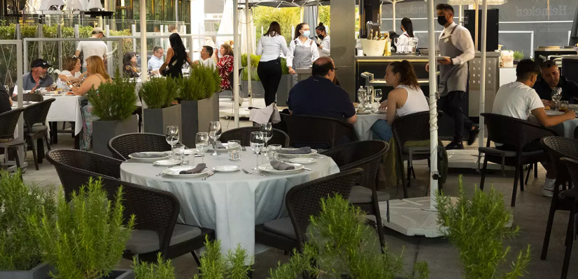 Una terraza acristalada de 250 m2 particularmente demandada por su luminosidad y por la posibilidad de apertura de sus cristaleras. Dispone de un reservado con todos los medios técnicos para la celebración de un evento.